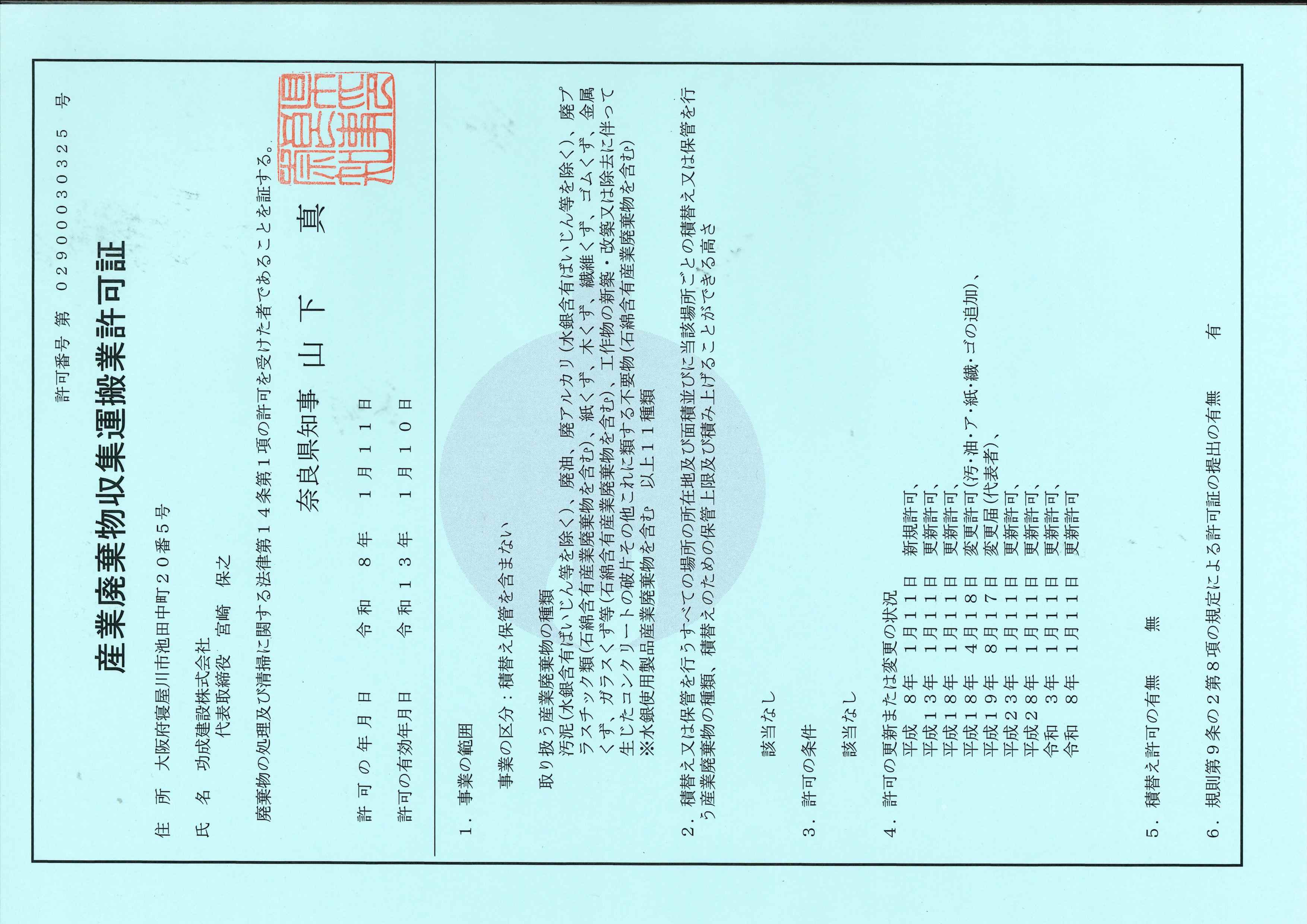 奈良県収集運搬許可証の新しいものが届きました。